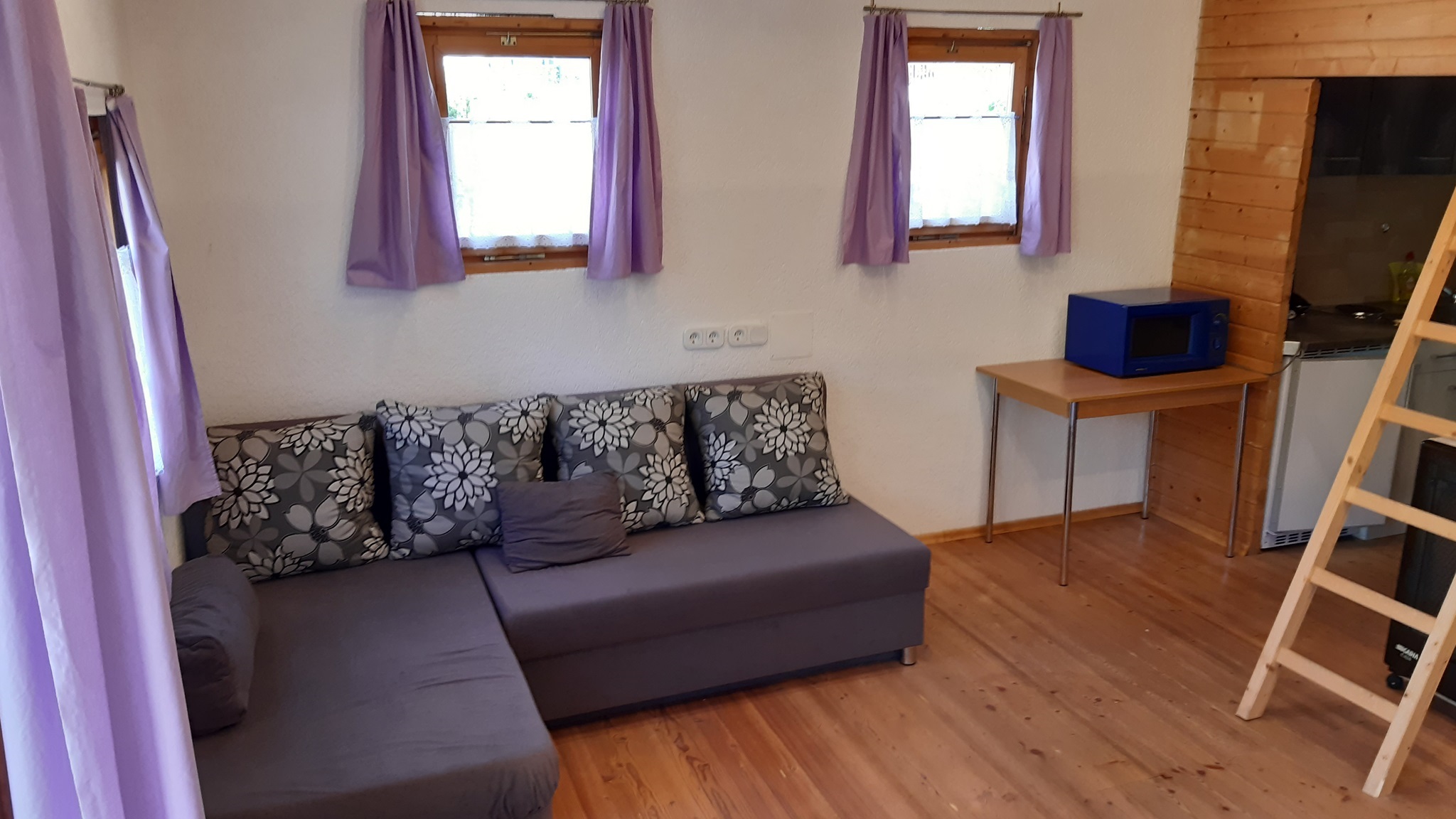 Die Ferienhütte befindet sich an einer günstigen Lage nahe der Einfahrt, was Ihnen einen einfachen Zugang zu allen Einrichtungen und Aktivitäten auf unserem Campingplatz ermöglicht. Sie können die umliegende Natur erkunden, am See entspannen oder verschiedene Freizeitaktivitäten genießen.